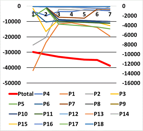 ![]() | 11/1、未回収金額を上位5頭に分割しました Nov. 1. I allocate the uncollected amount to top five popular horses. このグラフの1レース目が上のグラフの16レース目です。 1st race in this graph is the 16th race in the graph above. |
