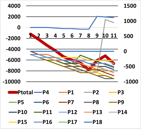 ![]() | 11/1、未回収金額を上位5頭に分割しました Nov. 1. I allocate the uncollected amount to top five popular horses. このグラフの1レース目が上のグラフの16レース目です。 1st race in this graph is the 16th race in the graph above. |